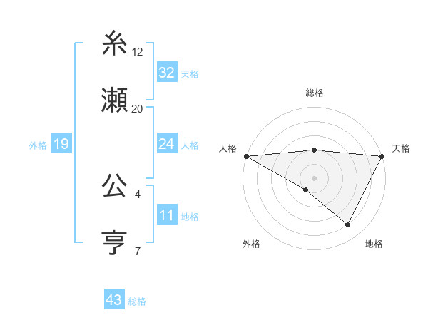 糸瀬 公亨さんの総格は43画の2点!