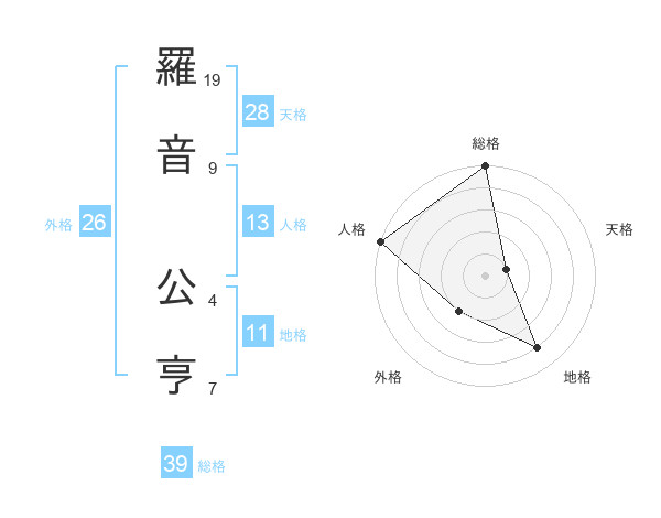 羅音 公亨さんを姓名の画数から五運を鑑定