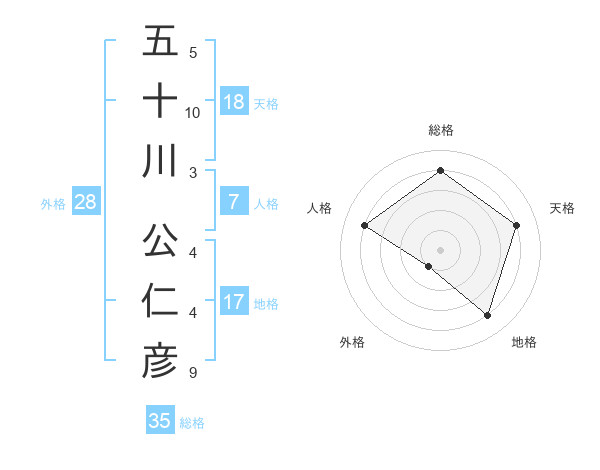 五十川 公仁彦さんを姓名の画数から五運を鑑定