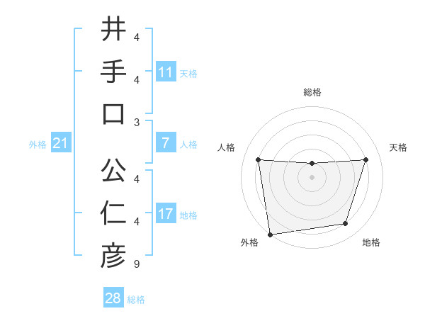 井手口 公仁彦さんの総格は28画の1点