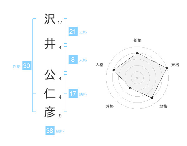 沢井 公仁彦さんを姓名の画数から五運を鑑定