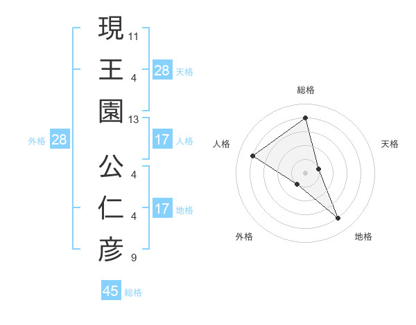 現王園 公仁彦さんの地格は17画の4点!
