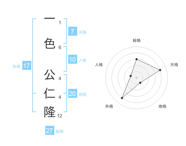一色 公仁隆さんを姓名の画数から五運を鑑定