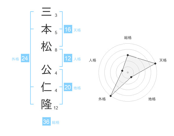 三本松 公仁隆さんを姓名の画数から五運を鑑定