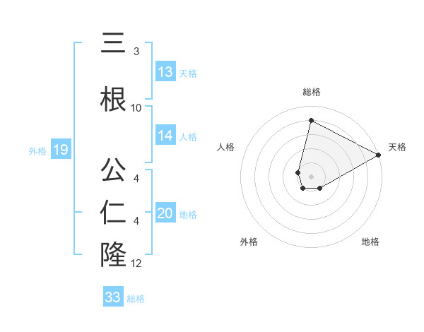 三根 公仁隆さんを姓名の画数から五運を鑑定