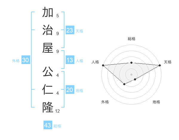 加治屋 公仁隆さんの天格は23画の5点!
