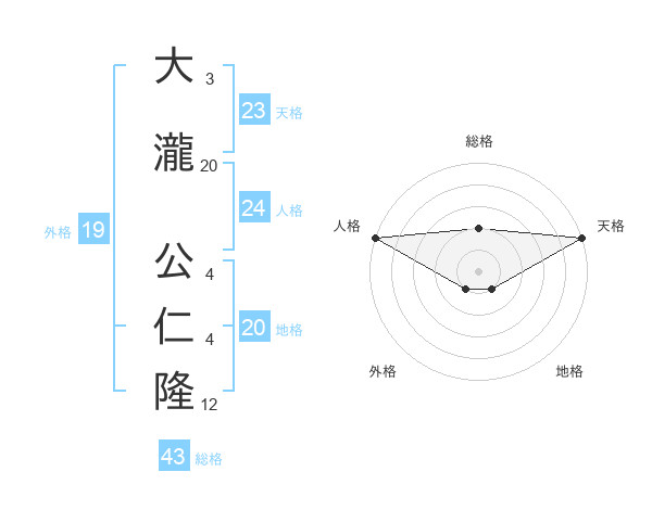 大瀧 公仁隆さんの天格は23画の5点!