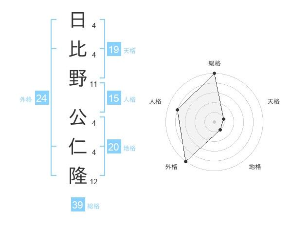 日比野 公仁隆さんの総格は39画の5点!
