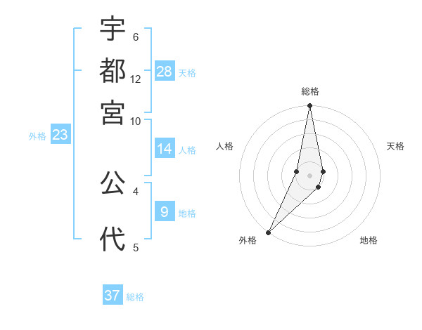 宇都宮 公代さんを姓名の画数から五運を鑑定