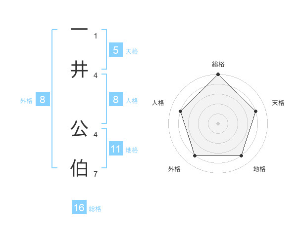 一井 公伯さんの総格は16画の5点!