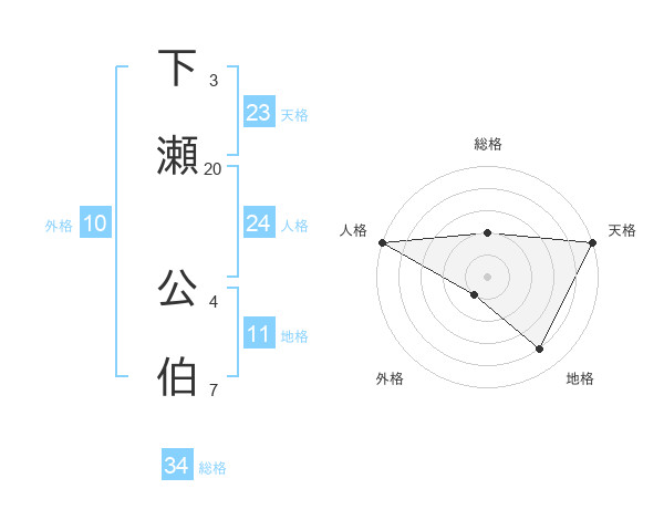 下瀬 公伯さんを姓名の画数から五運を鑑定