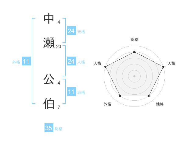 中瀬 公伯さんの総格は35画の4点!