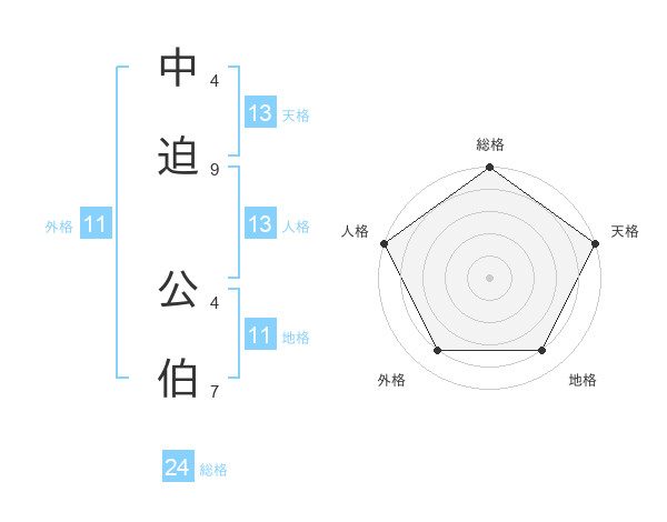 中迫 公伯さんを姓名の画数から五運を鑑定