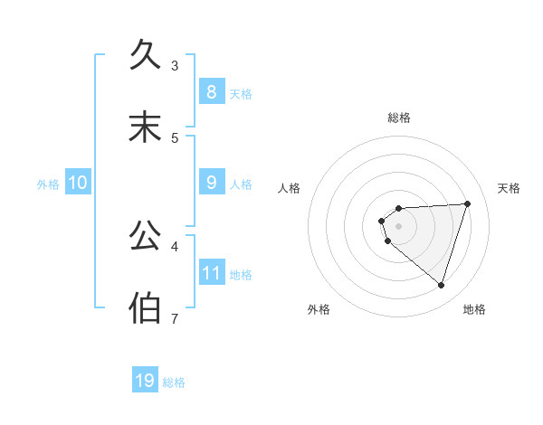 久末 公伯さんの総格は19画の1点!