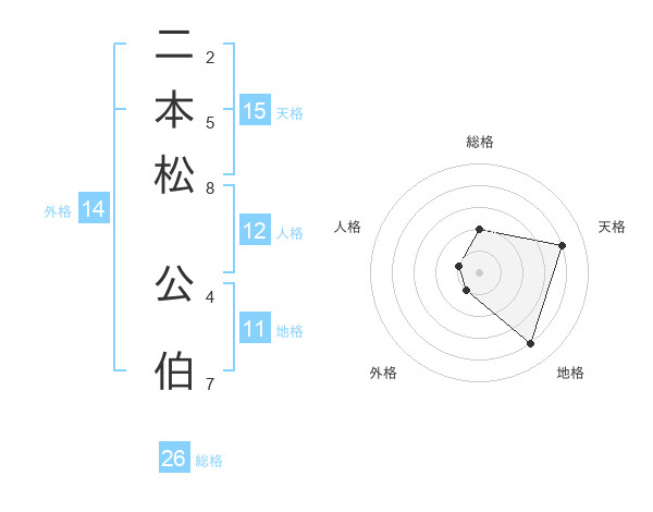 二本松 公伯さんの総格は26画の2点!