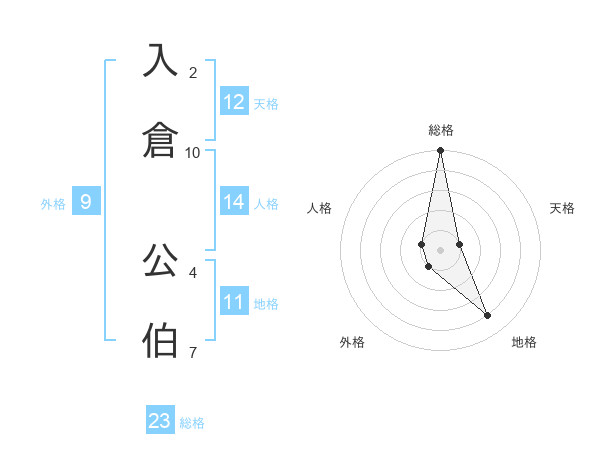 入倉 公伯さんの総格は23画の5点!