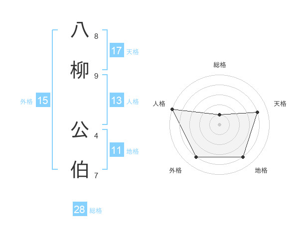 八柳 公伯さんの総格は28画の1点!