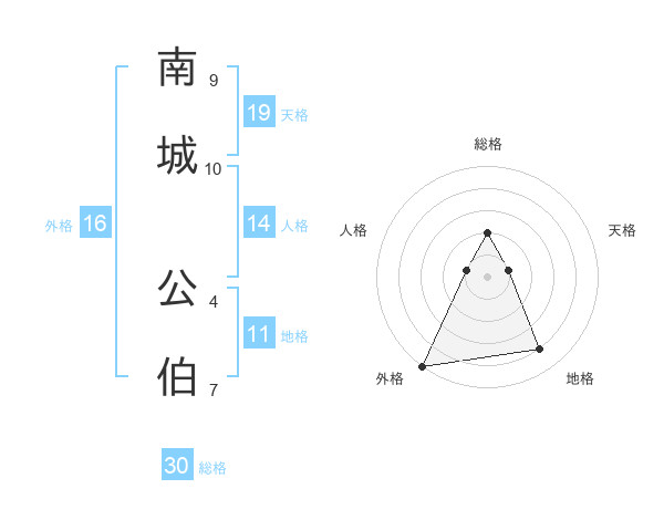南城 公伯さんの総格は30画の2点!