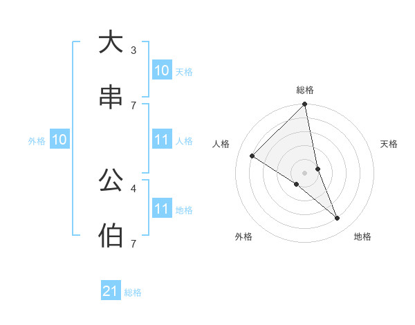 大串 公伯さんの総格は21画の5点!