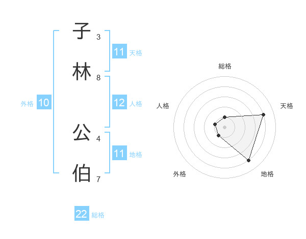 子林 公伯さんの地格は11画の4点!