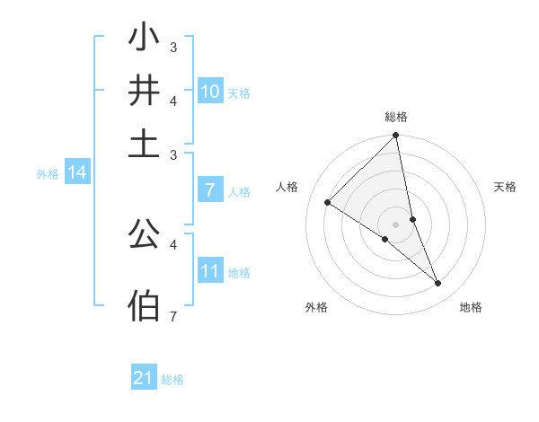 小井土 公伯さんの総格は21画の5点!