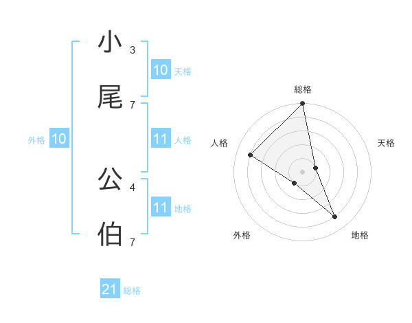 小尾 公伯さんの総格は21画の5点!