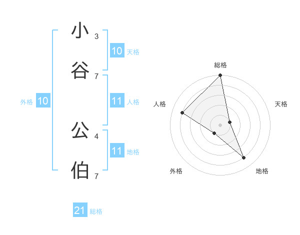 小谷 公伯さんの総格は21画の5点!