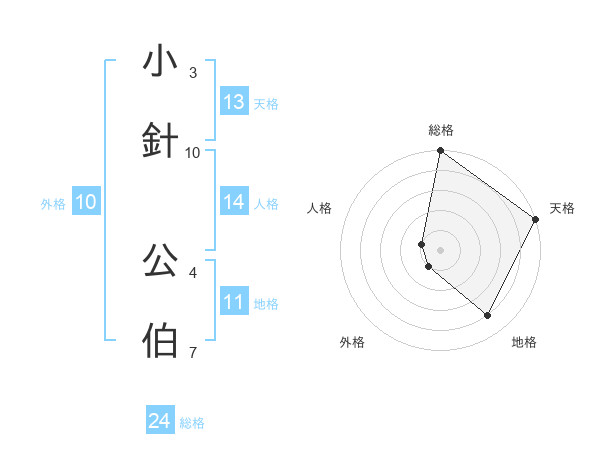 小針 公伯さんの天格は13画の5点!