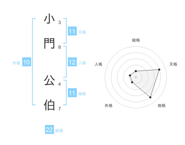 小門 公伯さんの地格は11画の4点!