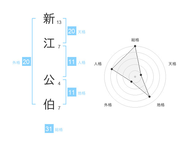新江 公伯さんの総格は31画の5点!