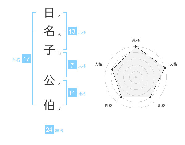 日名子 公伯さんの総格は24画の5点!