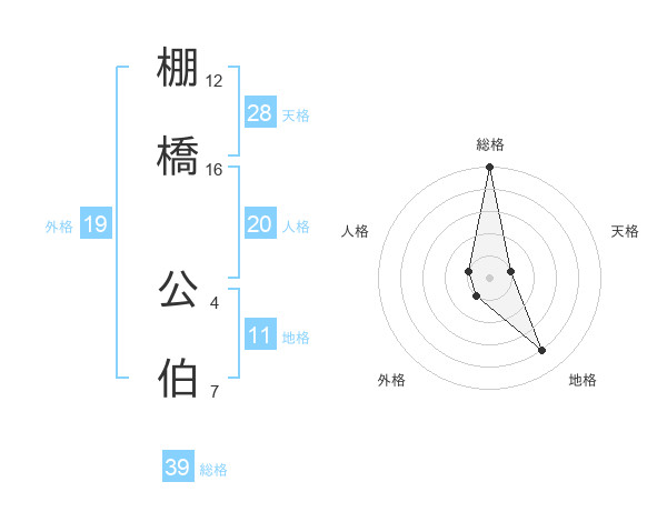 棚橋 公伯さんを姓名の画数から五運を鑑定