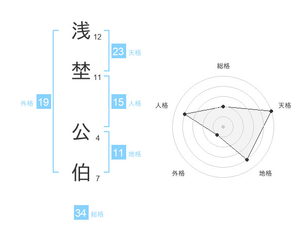 浅埜 公伯さんの天格は23画の5点!
