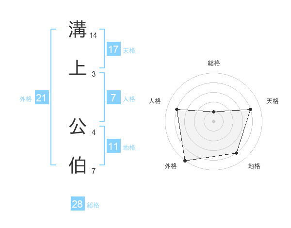 溝上 公伯さんの天格は17画の4点!