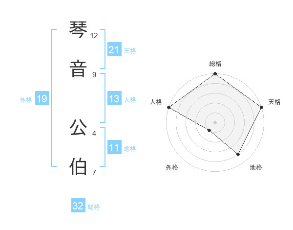 琴音 公伯さんを姓名の画数から五運を鑑定