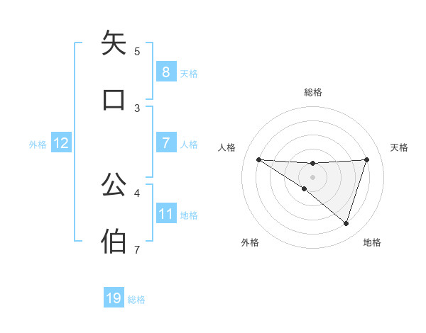 矢口 公伯さんの総格は19画の1点!