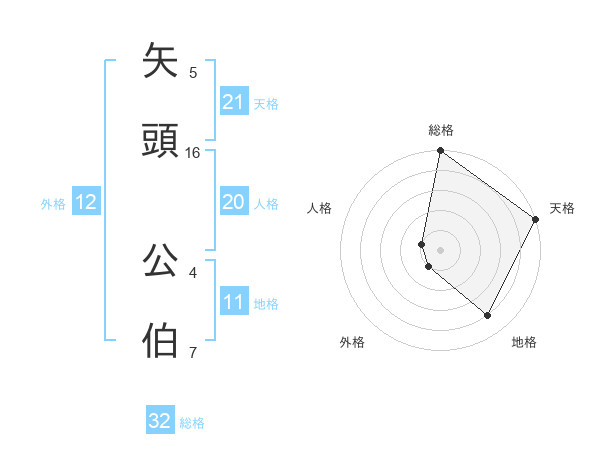 矢頭 公伯さんの天格は21画の5点!