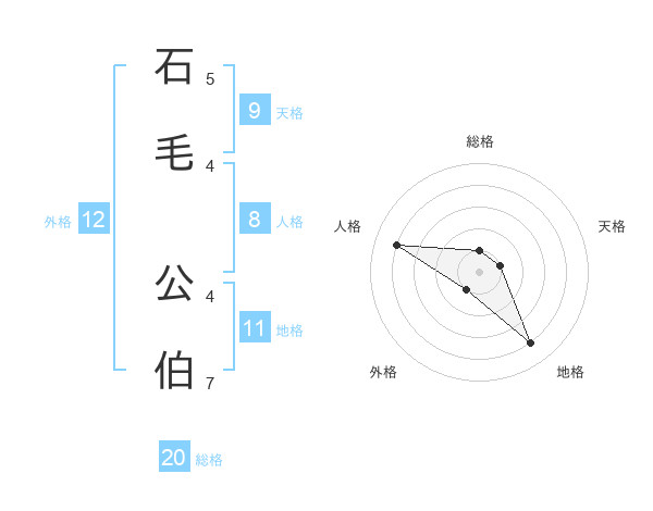 石毛 公伯さんの総格は20画の1点!