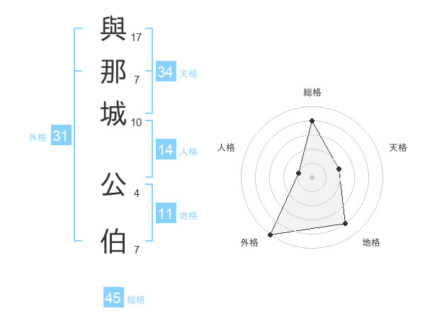 與那城 公伯さんの外格は31画の5点!
