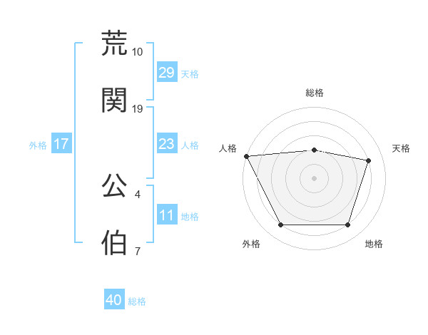 荒関 公伯さんの総格は40画の2点!