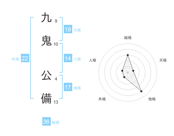 九鬼 公備さんの天格は19画の1点!