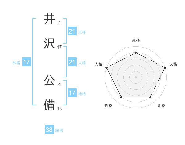 井沢 公備さんの総格は38画の4点!