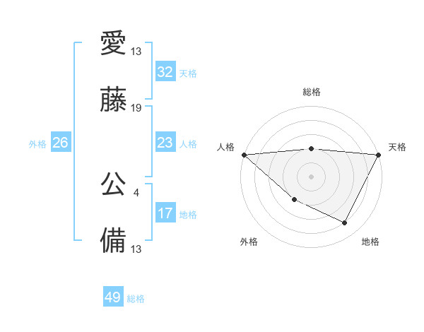 愛藤 公備さんを姓名の画数から五運を鑑定