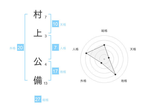 村上 公備さんの地格は17画の4点!