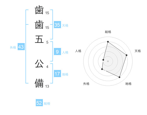 歯歯五 公備さんを姓名の画数から五運を鑑定