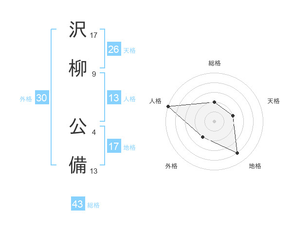 沢柳 公備さんの天格は26画の2点!