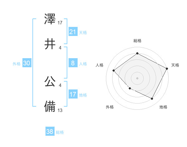 澤井 公備さんの総格は38画の4点!
