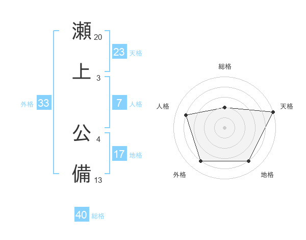 瀬上 公備さんの天格は23画の5点!