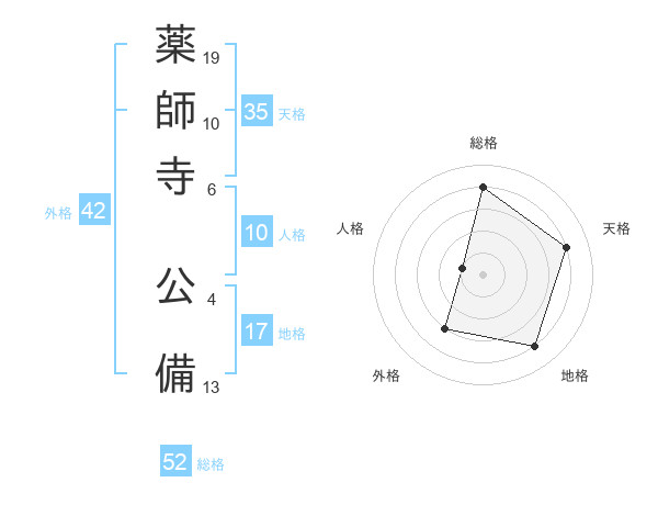 薬師寺 公備さんの総格は52画の4点!