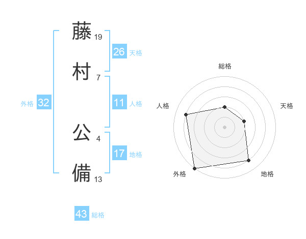 藤村 公備さんの総格は43画の2点!
